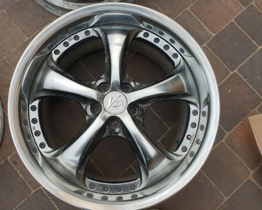 For sale genuine WORK VS-KF relipped and redrilled from 5x1143 to 5x120 by using custom inserts its possible to hammer them out and have wheels as 5x1143. Tyres not included condition as pictured.